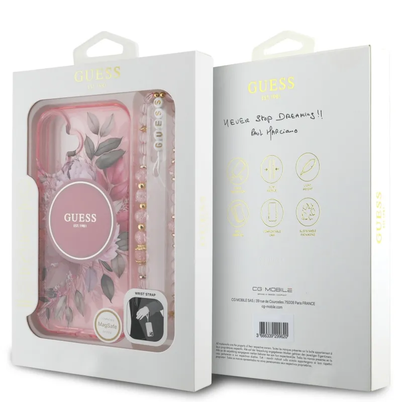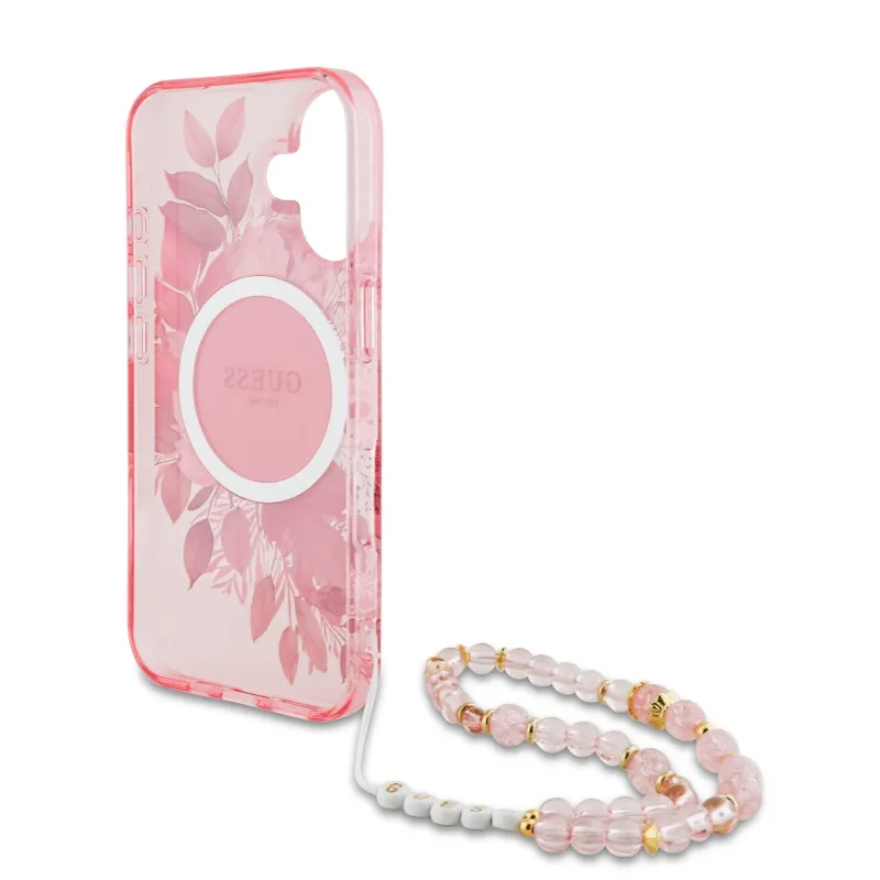 Guess IML Flowers Strap MagSafe hátlapi borító iPhone 16 Plus rózsaszínű készülékhez