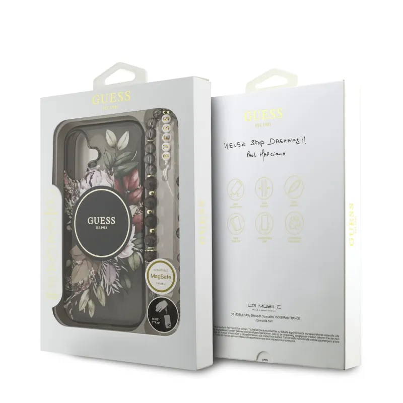Guess IML Flowers Strap MagSafe hátlapi borító iPhone 17 Fekete