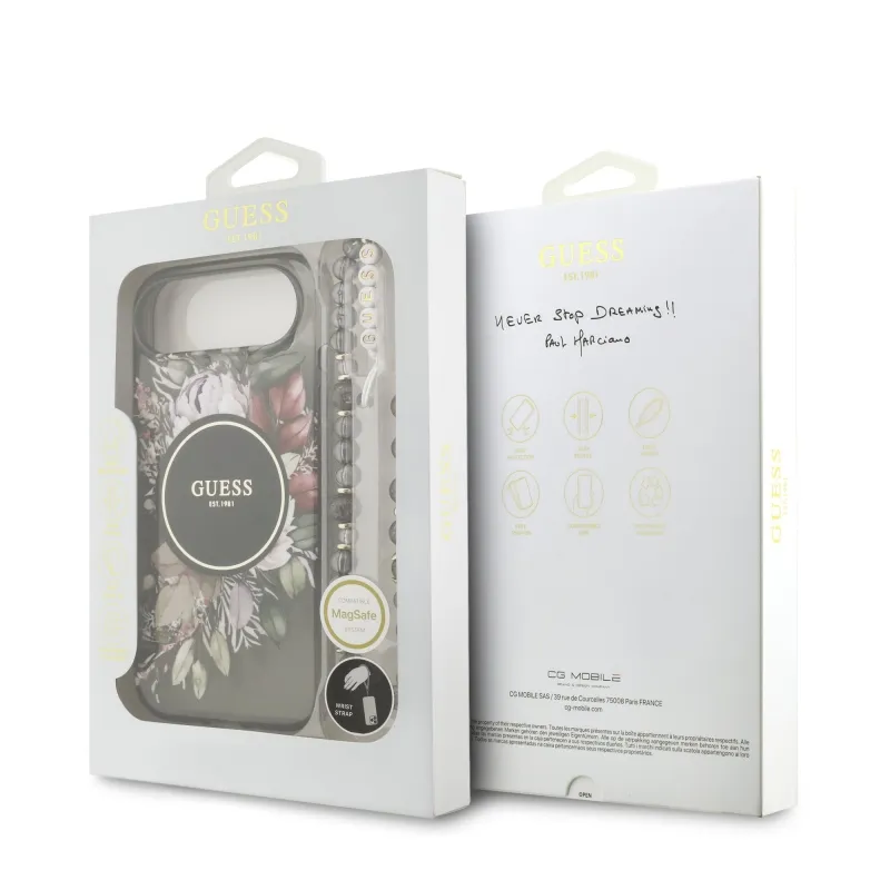 Guess IML Flowers Strap MagSafe hátlapi borító iPhone Airhez Fekete