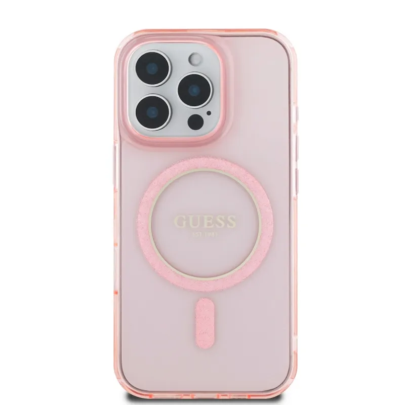 Guess IML Glitter Ring MagSafe hátlap iPhone 16 Pro rózsaszínű iPhone 16 Pro készülékhez