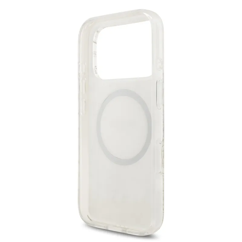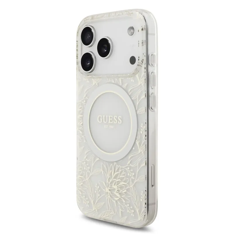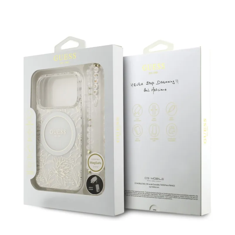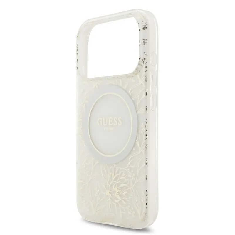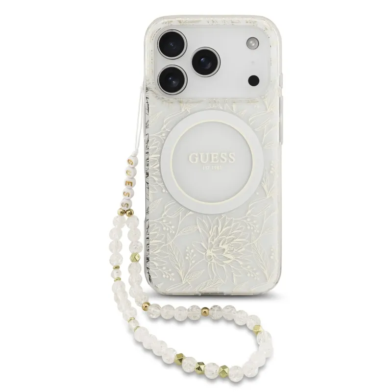 Guess IML Virágok Allover Strap MagSafe hátlapi borító iPhone 17 Pro fehérhez