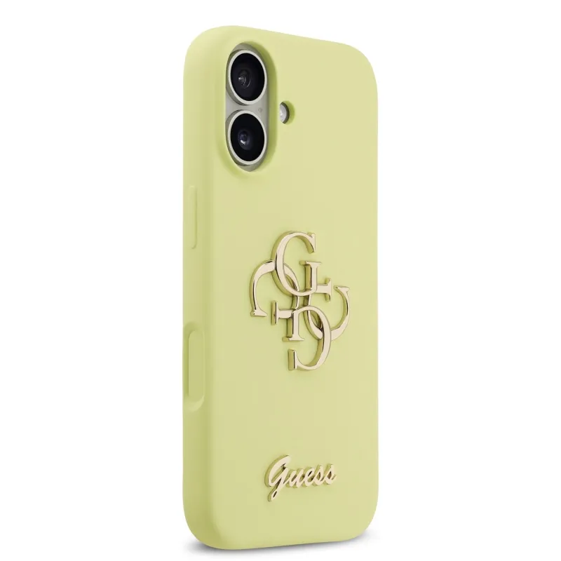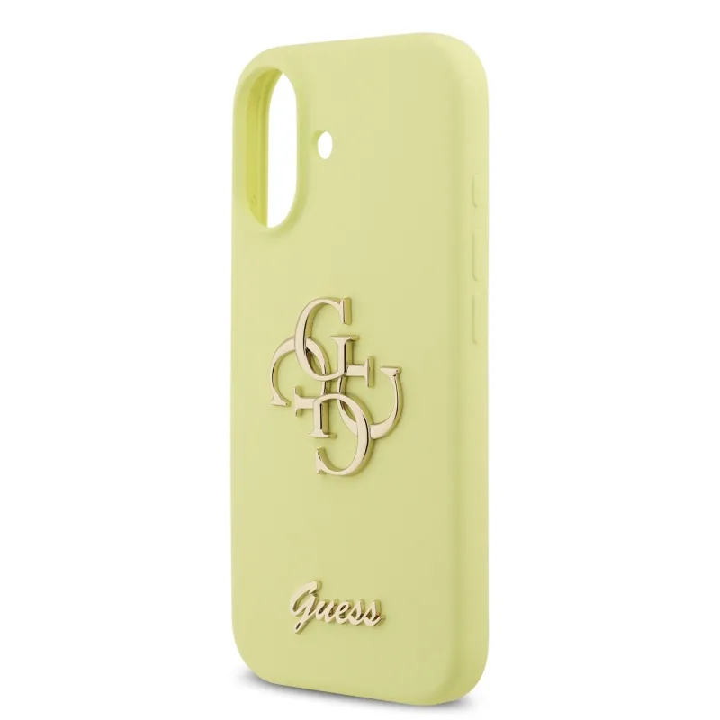 Guess Liquid szilikon 4G fém logós hátlap iPhone 17 Sárga