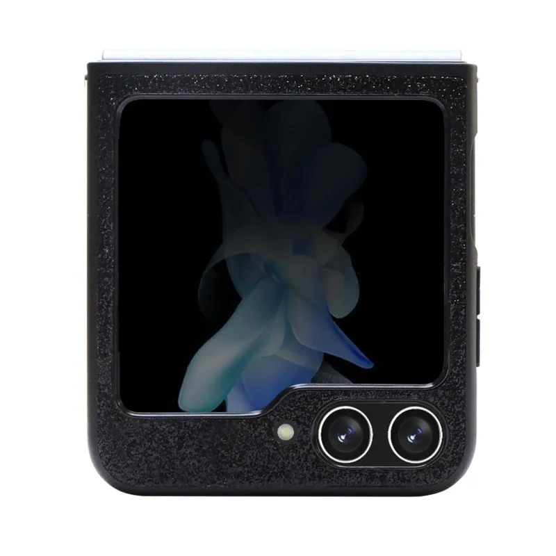 Guess PC/TPU Glitter Flakes Metal Logo hátlap Samsung Galaxy Z Flip 5 Fekete fekete