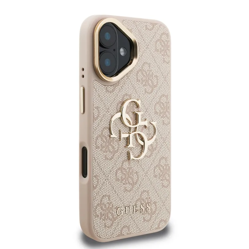 Guess PU 4G fém logó állvány kamerakeret hátlap iPhone 16 rózsaszínhez