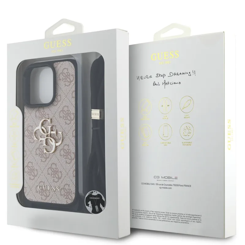 Guess PU 4G fém logó fém keresztpánt hátlapi borító iPhone 15 Pro Max rózsaszínhez