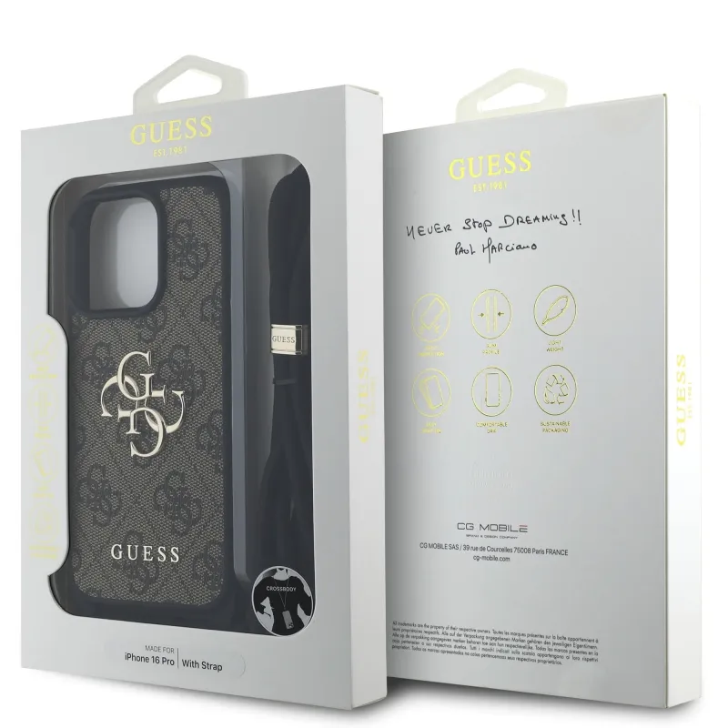 Guess PU 4G fém logó fém keresztpánt hátlapi borító iPhone 16 Pro barna színűre
