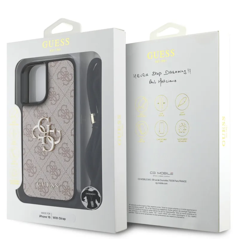Guess PU 4G fém logó fém keresztpánt hátlapi borító iPhone 16 rózsaszínhez