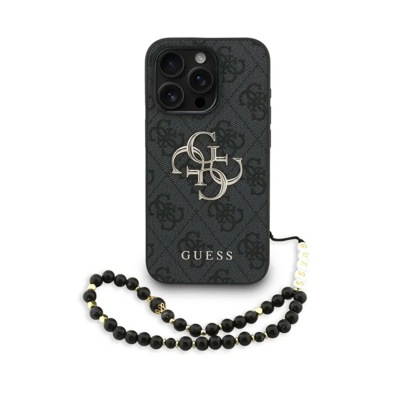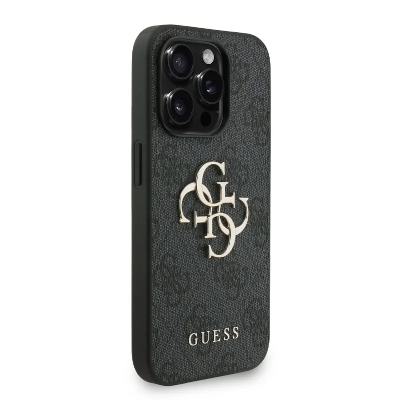 Guess PU 4G fém logós fém pánt hátlap iPhone 15 Pro Fekete