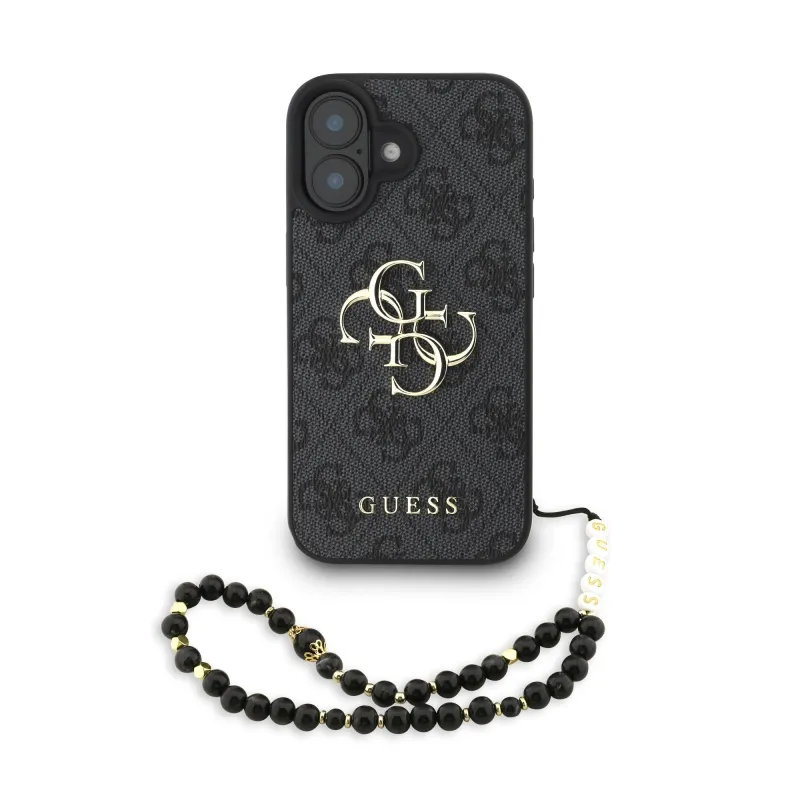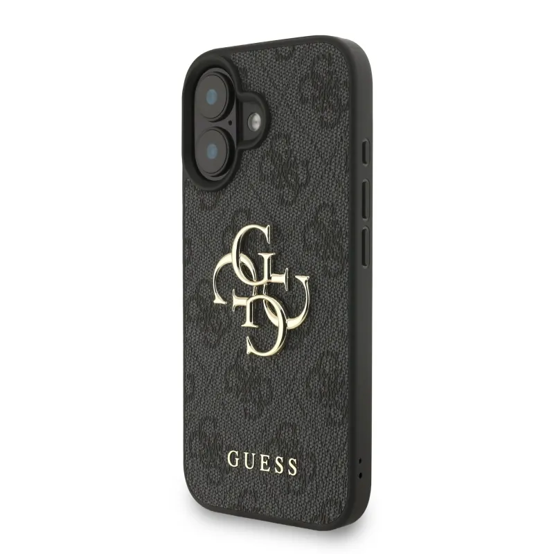 Guess PU 4G fém logós fém pánt hátlap iPhone 16 fekete