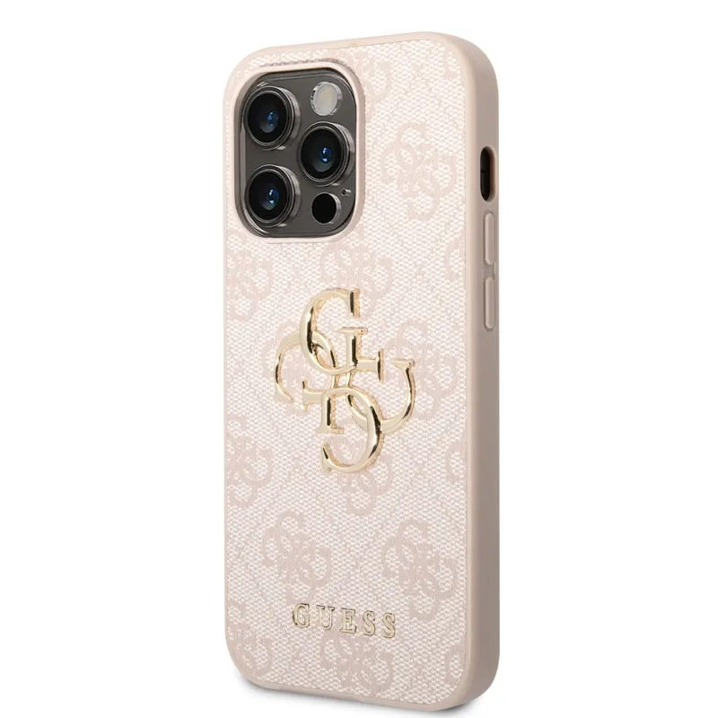 Guess PU 4G fém logós hátlap iPhone 15 Pro rózsaszínhez