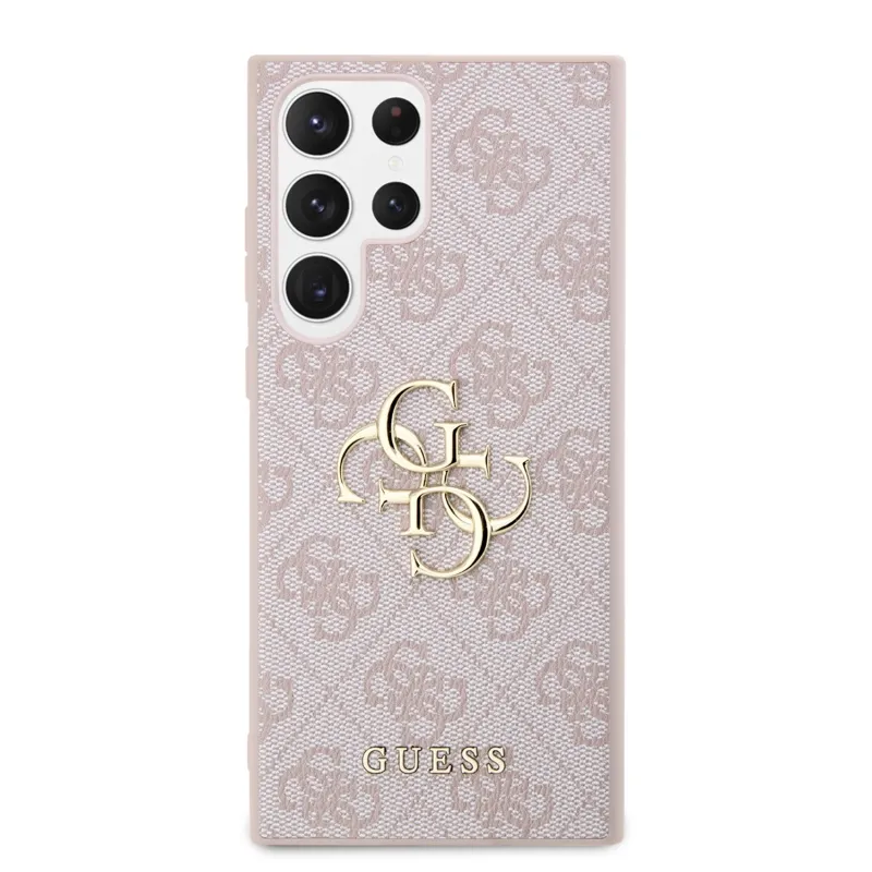 Guess PU 4G fém logós hátlap Samsung Galaxy S24 Ultra rózsaszín