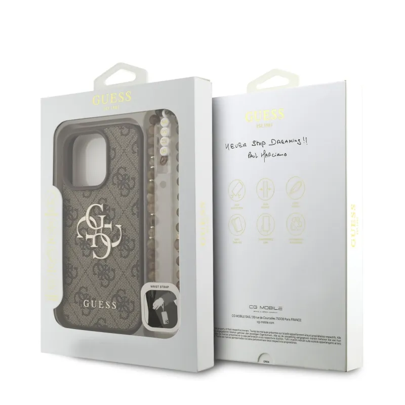 Guess PU 4G fém logós pántos hátlap iPhone 16 Pro barna színű iPhone 16 Pro-hoz barna