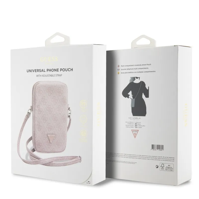 Guess PU 4G háromszög logós telefonos táska cipzárral rózsaszínű
