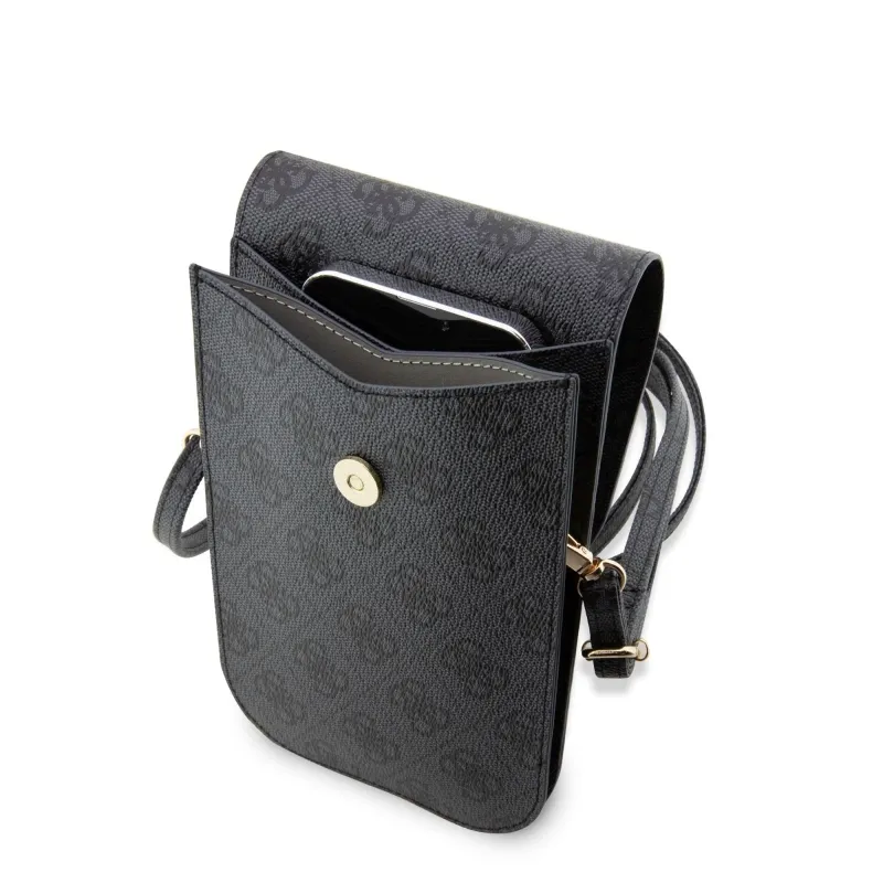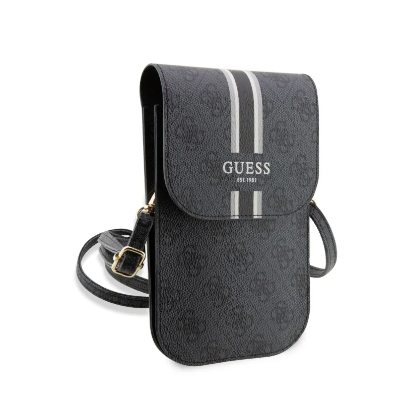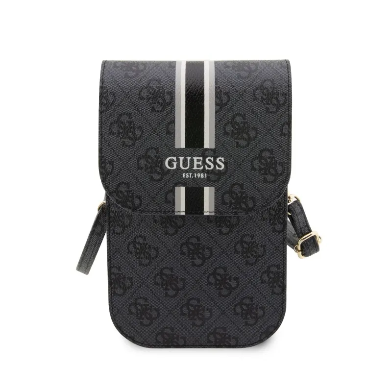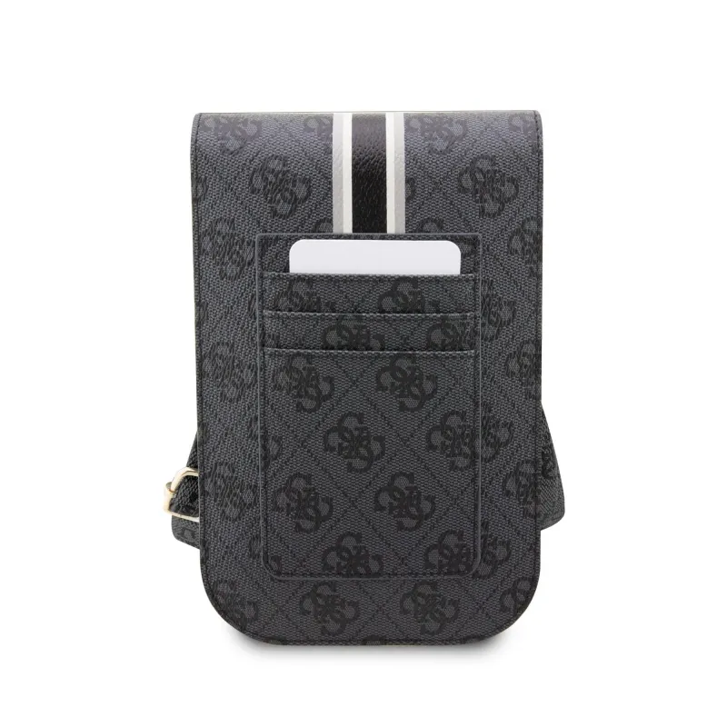 Guess PU 4G nyomtatott csíkos telefon táska fekete