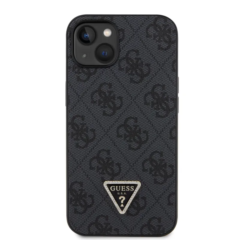 Guess PU 4G Strass háromszög fém logó hátlap iPhone 15 fekete