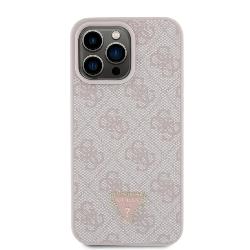 Guess PU 4G Strass háromszög fém logó hátlap iPhone 15 Pro Max rózsaszínűre