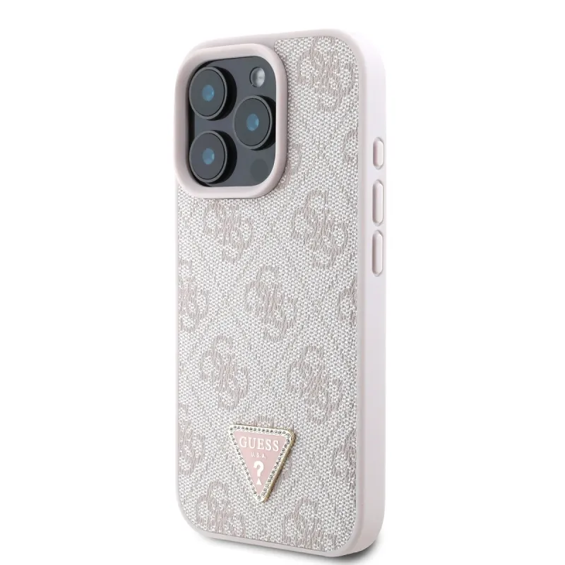 Guess PU 4G Strass háromszög fém logó hátlap iPhone 16 Pro rózsaszínhez