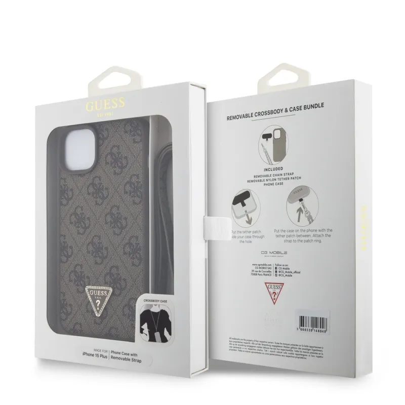 Guess PU 4G Strass háromszög fém logó hátlap + keresztpánt iPhone 15 Plus barna színű iPhone 15 Plus-hoz barna