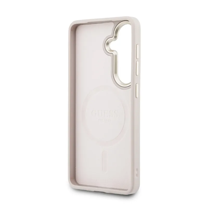Guess PU bőr 4G arany keret mágneses hátlap Samsung Galaxy S26+ rózsaszín
