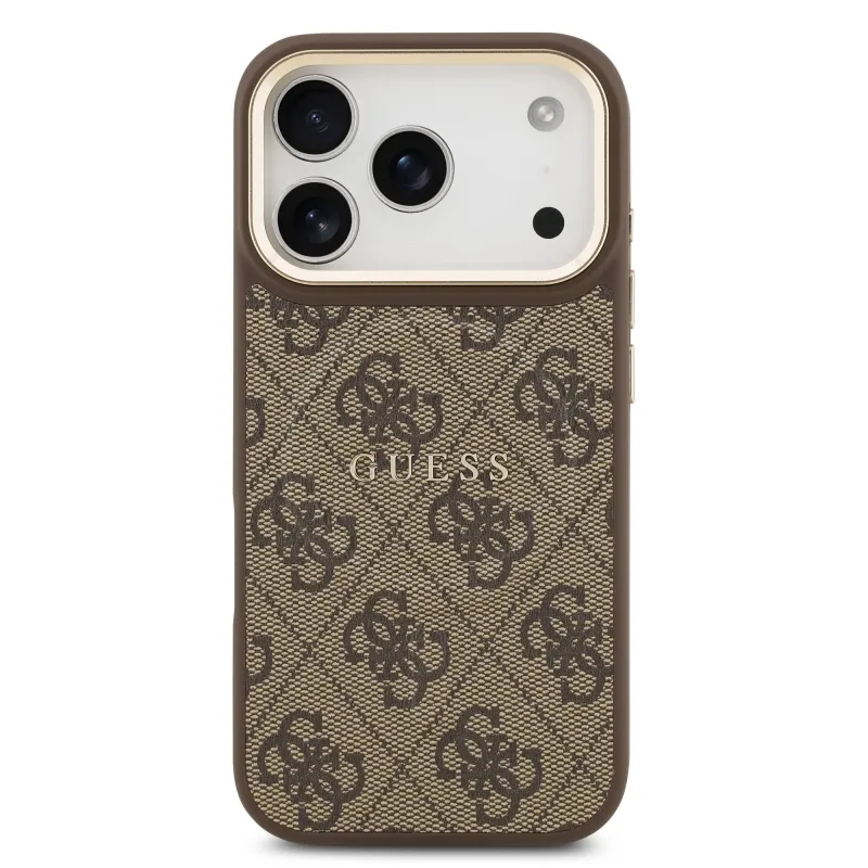 Guess PU bőr 4G aranykeret MagSafe hátlap iPhone 17 Pro barna színű borítóhoz