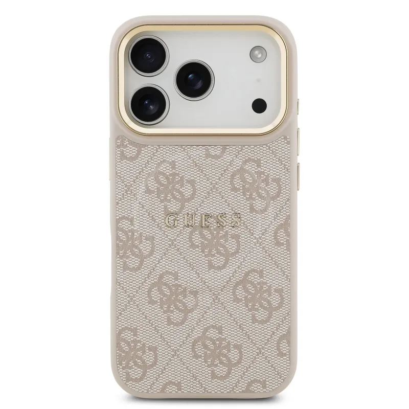 Guess PU bőr 4G aranykeret MagSafe hátlap iPhone 17 Pro rózsaszínű borítóhoz