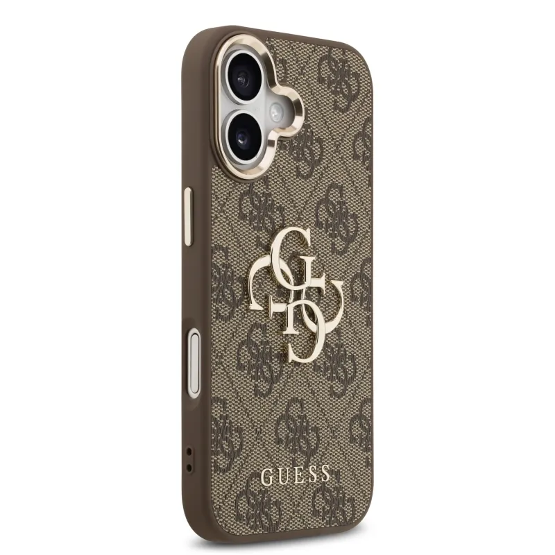 Guess PU bőr 4G fém logó arany keret hátlapi borító iPhone 17 barna barna
