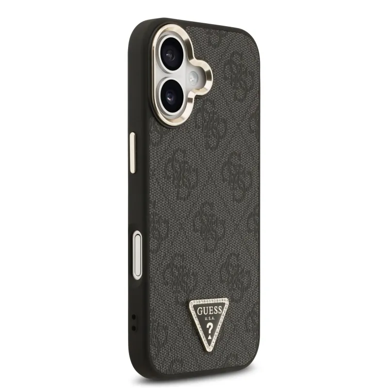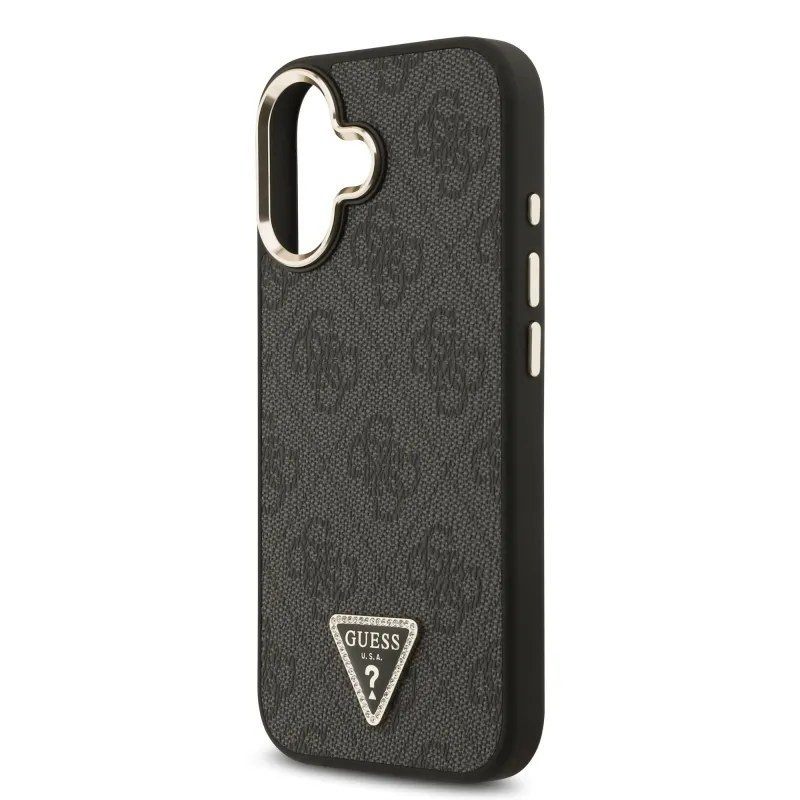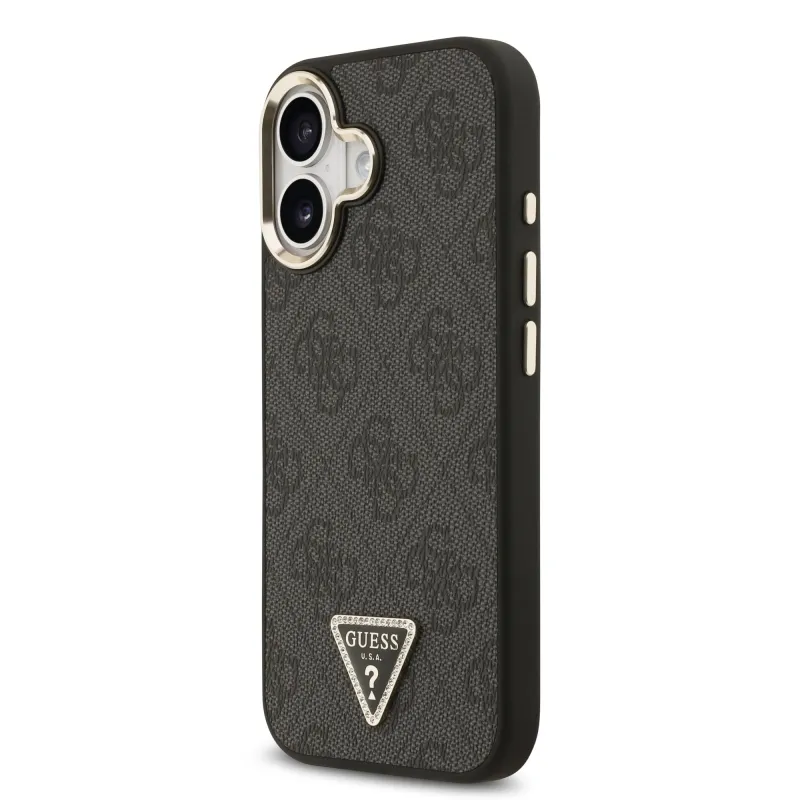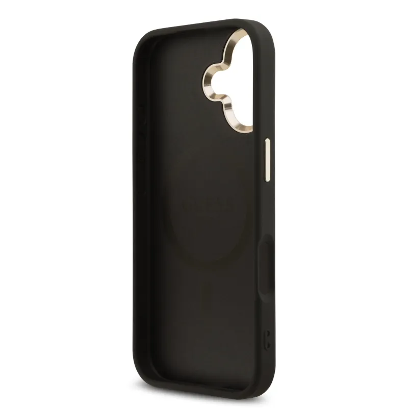 Guess PU bőr 4G háromszög logó arany keret MagSafe hátlap iPhone 17 Fekete fekete