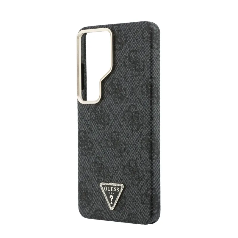 Guess PU bőr 4G Strass háromszög háromszög logó arany keret mágneses hátlap borító Samsung Galaxy S26 Ultra Fekete