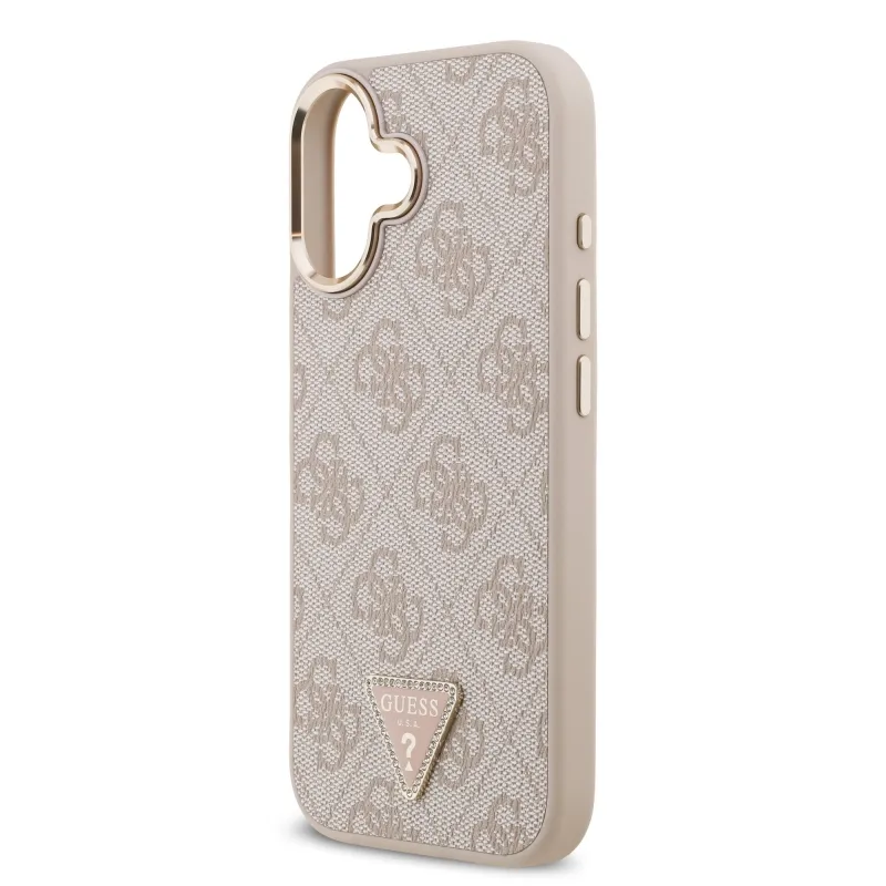 Guess PU bőr 4G Strass háromszög logó arany keret MagSafe hátlapi borító iPhone 17 rózsaszínhez