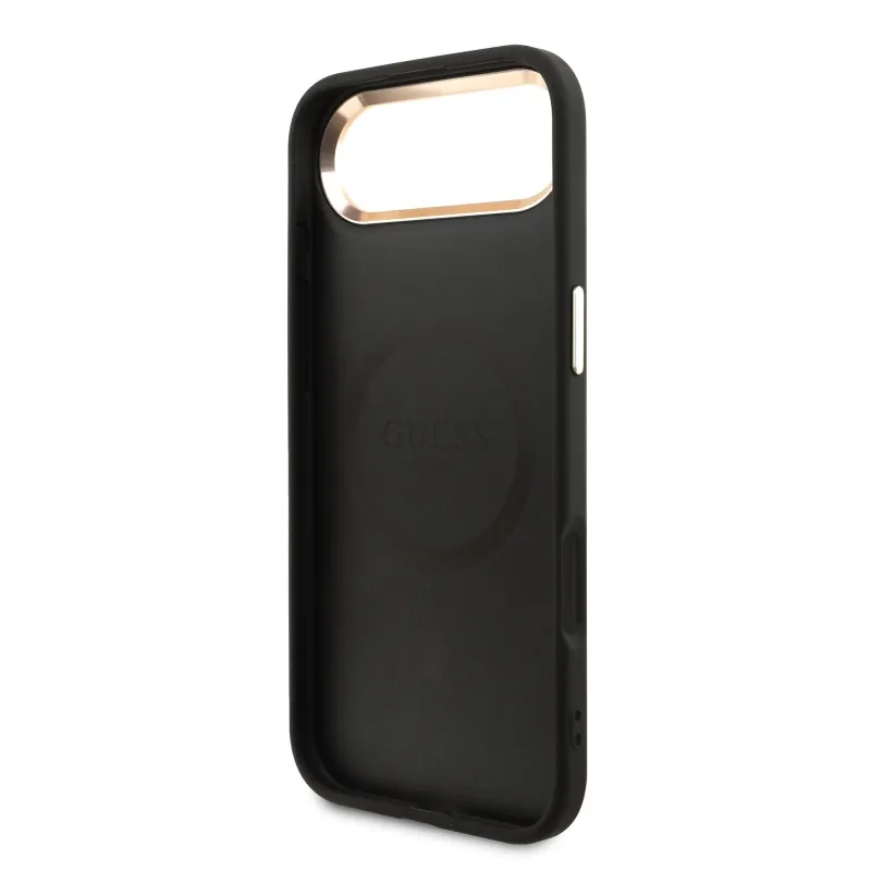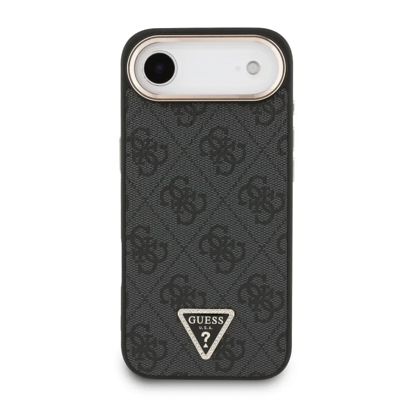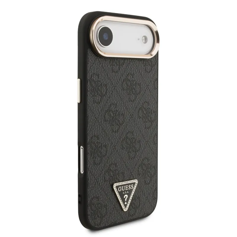 Guess PU bőr 4G Strass háromszög logó arany keret MagSafe hátlapi borító iPhone Air Fekete