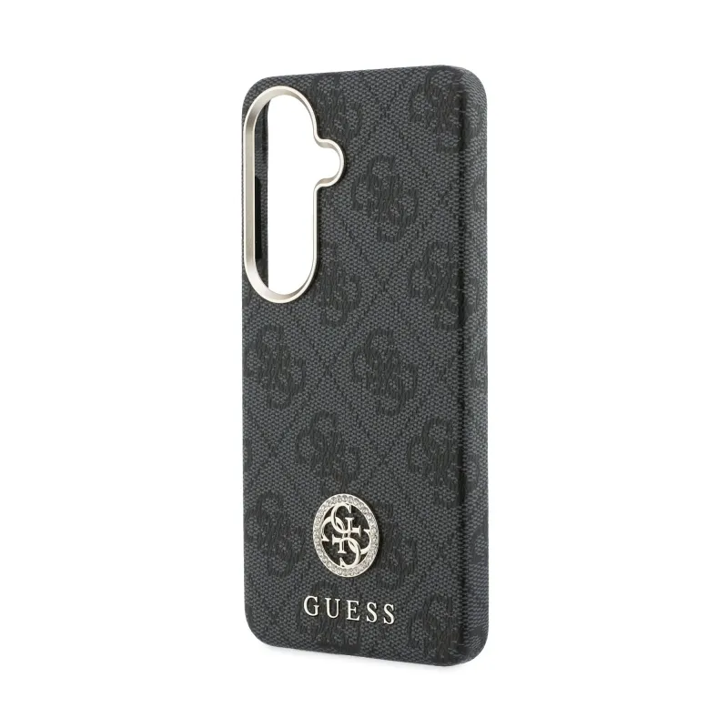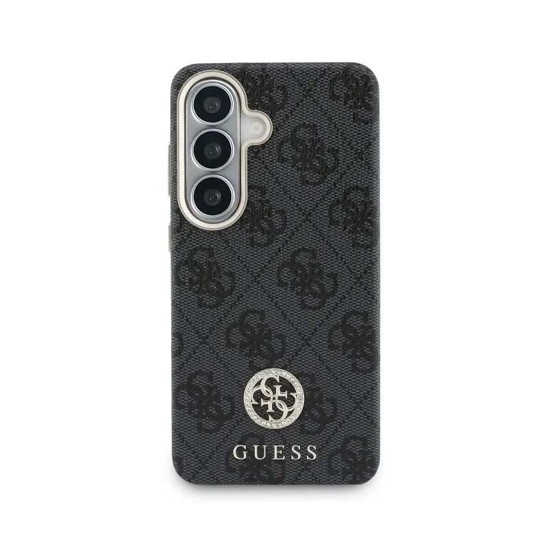 Guess PU bőr 4G Strass Logo arany keret mágneses hátlap Samsung Galaxy S26 fekete