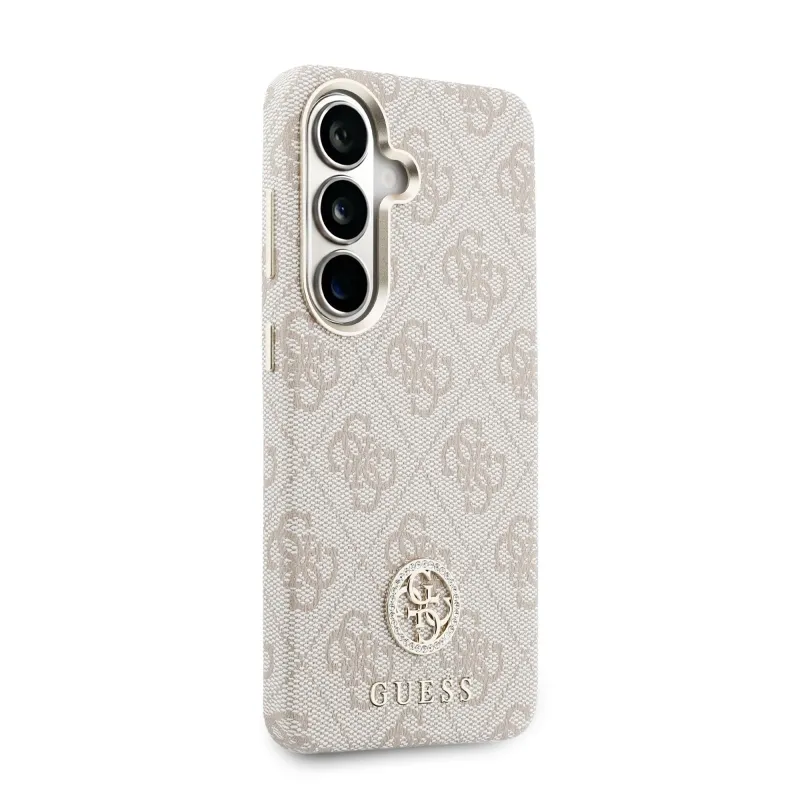 Guess PU bőr 4G Strass Logo arany keret mágneses hátlap Samsung Galaxy S26 Pink