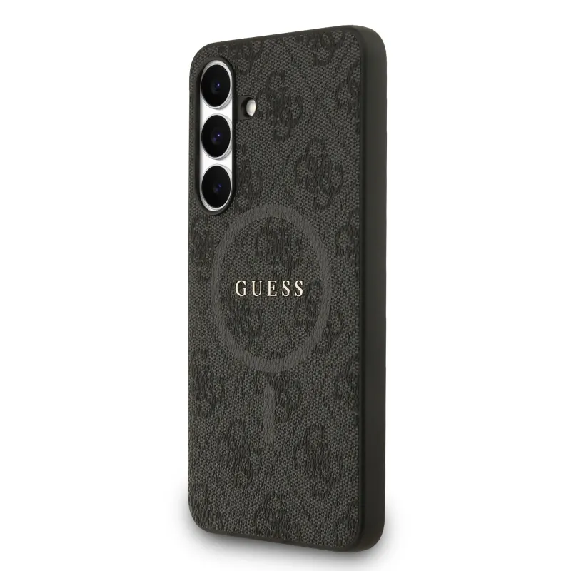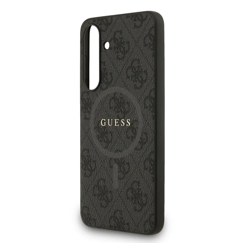 Guess PU bőr 4G színes gyűrű MagSafe hátlap Samsung Galaxy S25 FE fekete