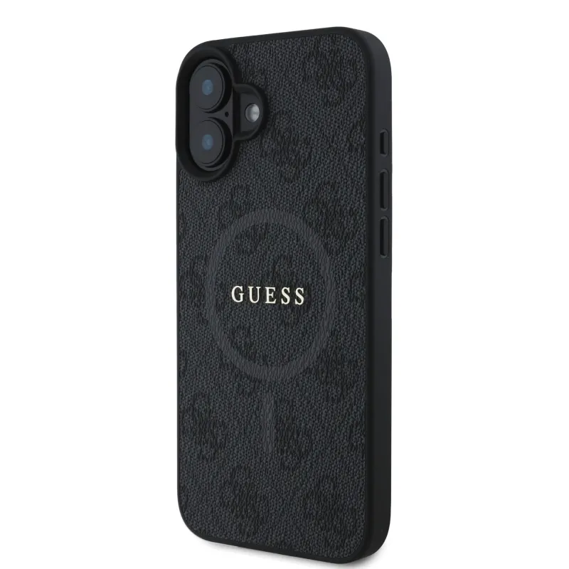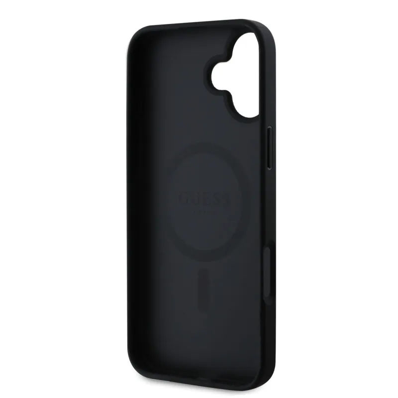 Guess PU bőr 4G színes gyűrűs MagSafe hátlap iPhone 16-hoz Fekete