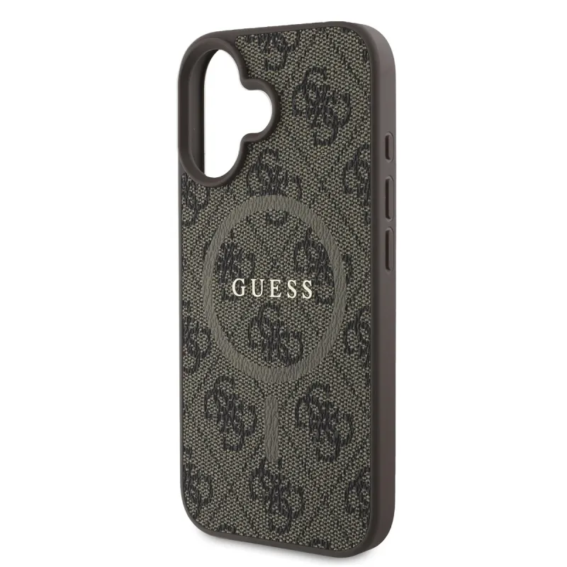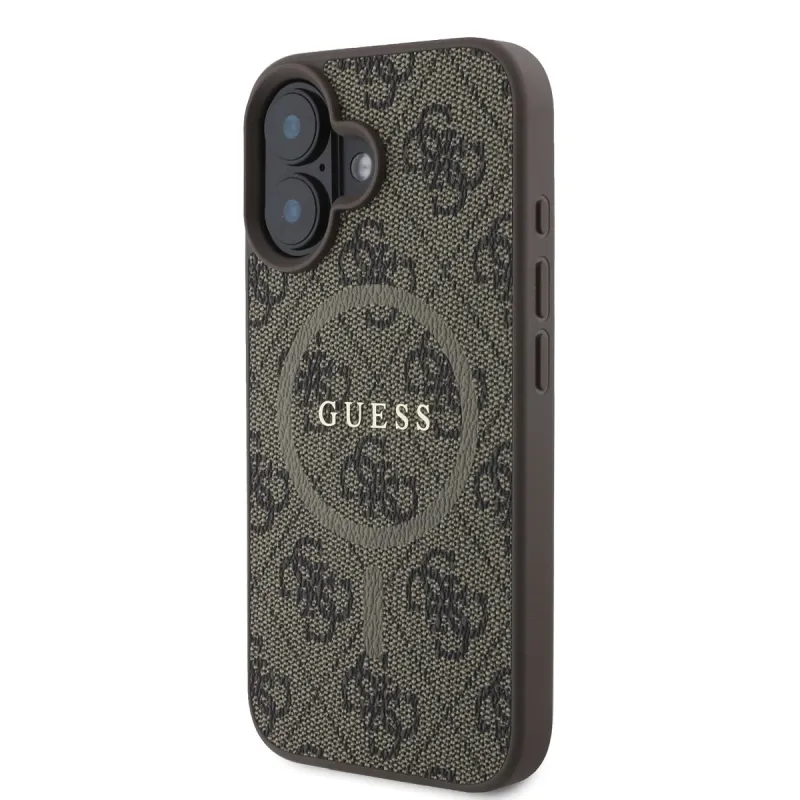 Guess PU bőr 4G színes gyűrűs MagSafe hátlap iPhone 16 Plus barna színű hátlaphoz