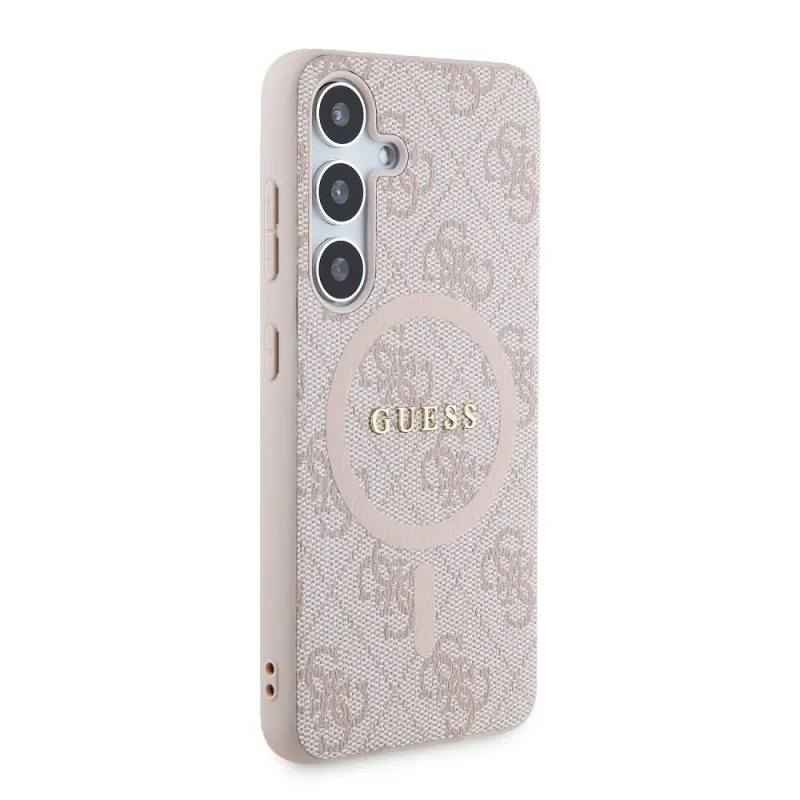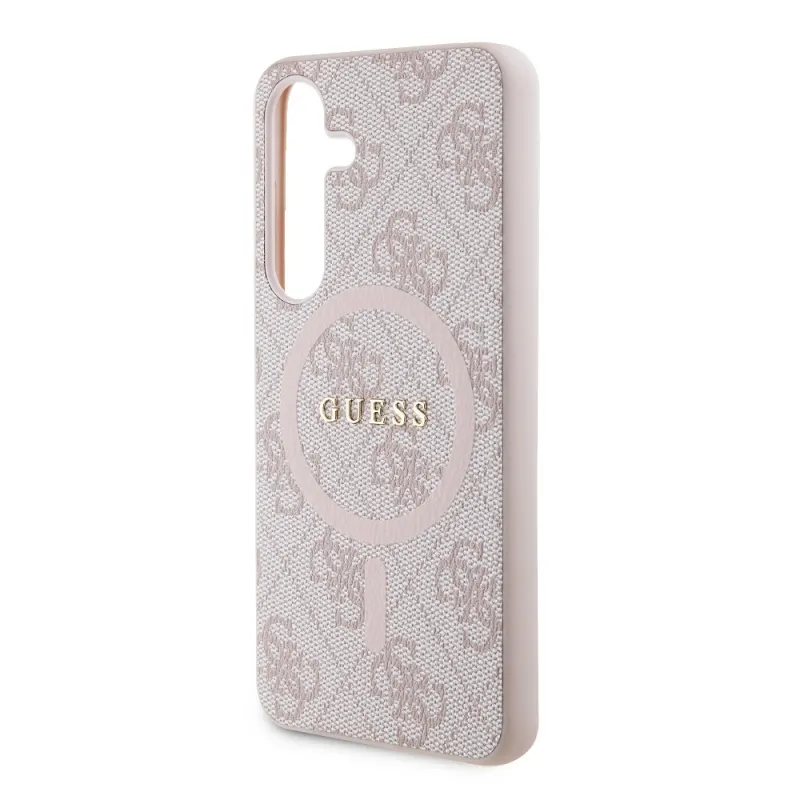 Guess PU bőr 4G színes gyűrűs MagSafe hátlap Samsung Galaxy S24 rózsaszínű borítóhoz