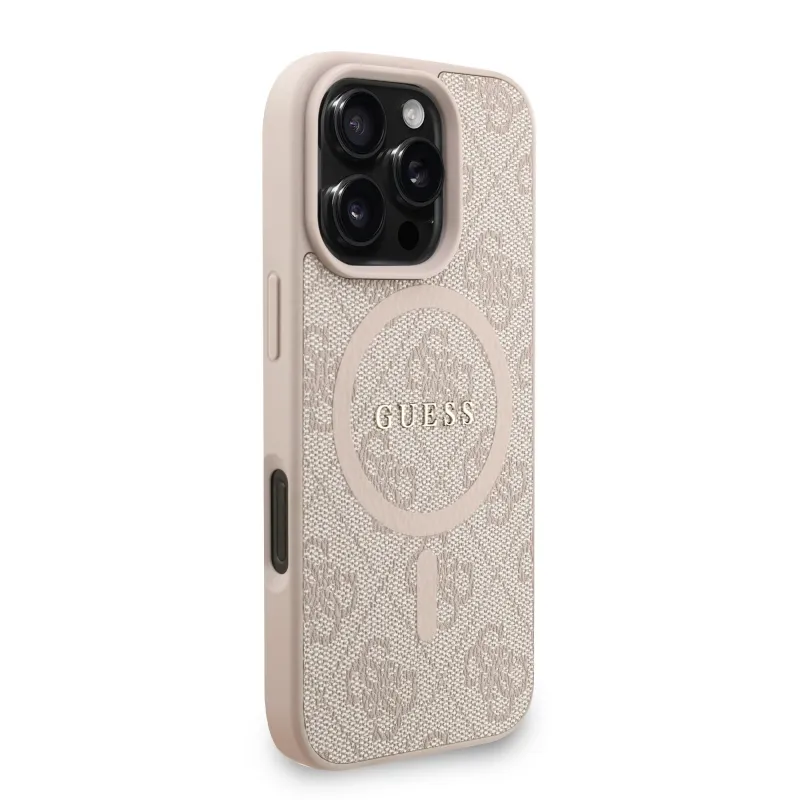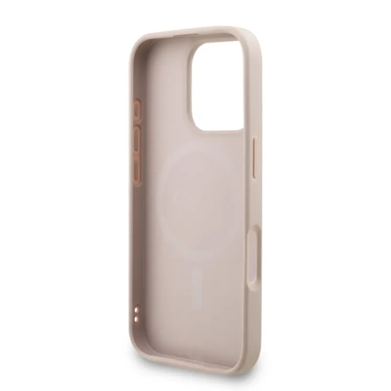 Guess PU bőr 4G színes gyűrűs pánt MagSafe hátsó borító iPhone 16 Pro Max rózsaszínhez