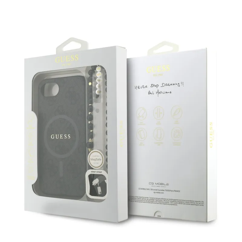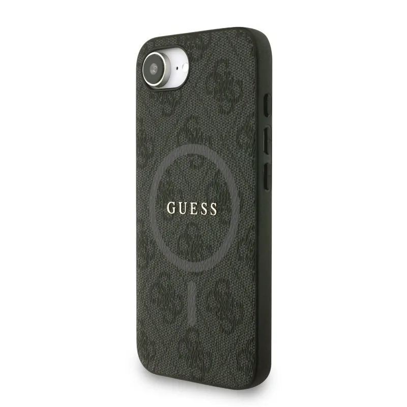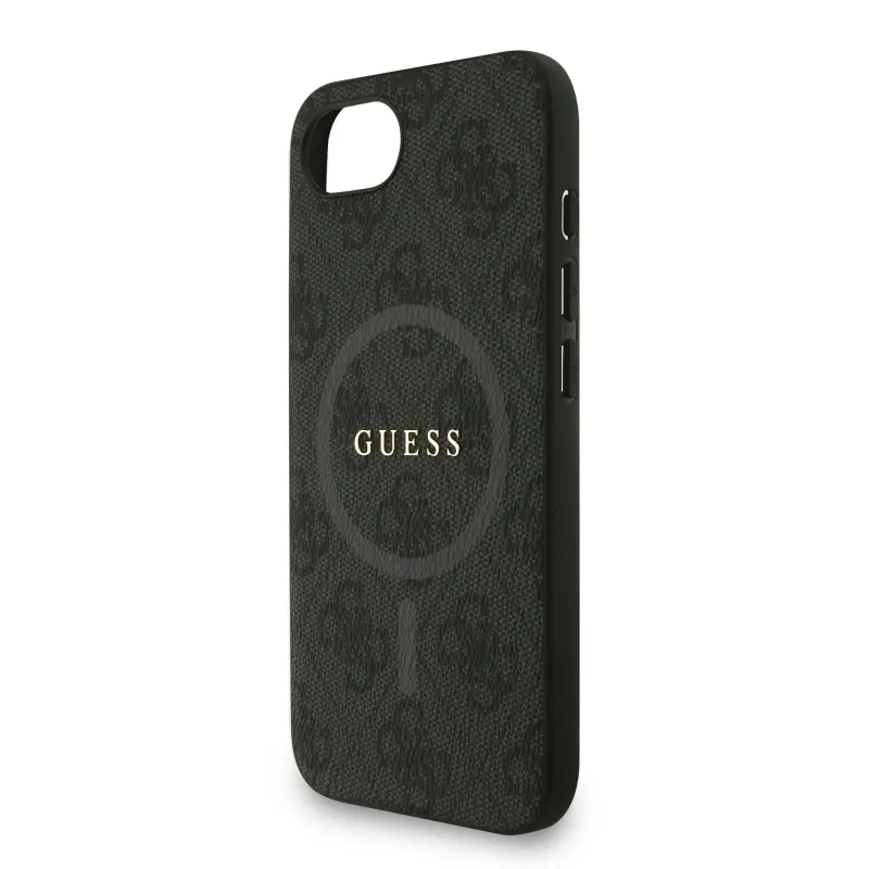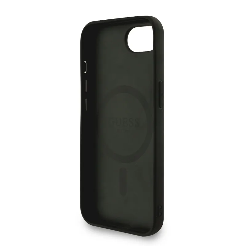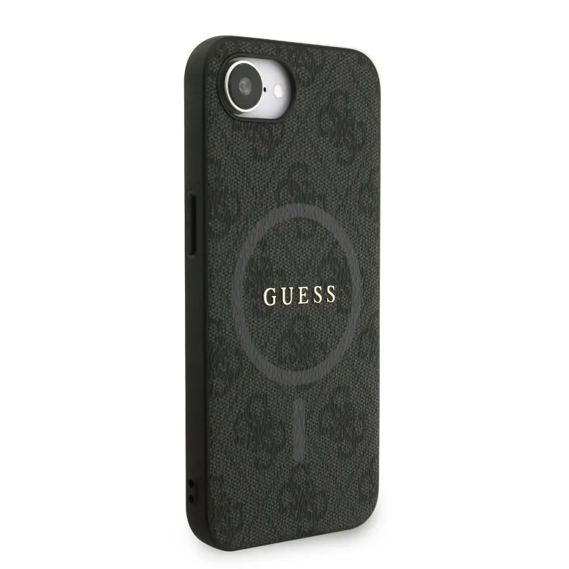 Guess PU bőr 4G színes gyűrűs pánt MagSafe hátsó borító iPhone 16e Fekete