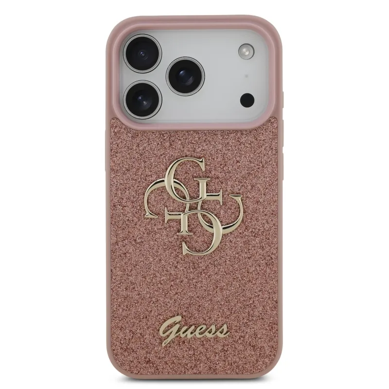 Guess PU Fixed Glitter 4G fém logó hátlap iPhone 17 Pro rózsaszínhez
