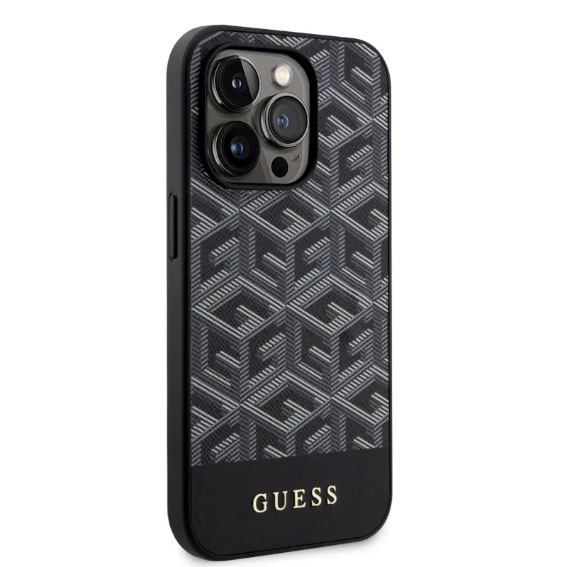 Guess PU G Cube MagSafe hátlap iPhone 15 Pro-hoz Fekete