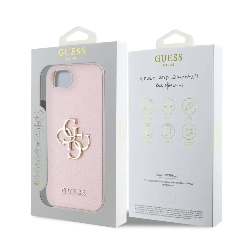 Guess PU szemcsés 4G fém logós hátlap iPhone SE4 rózsaszínhez