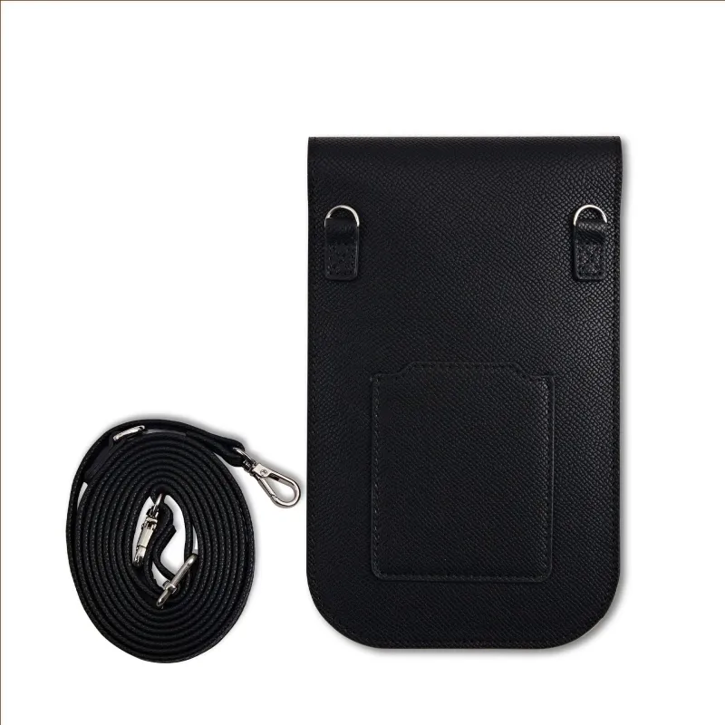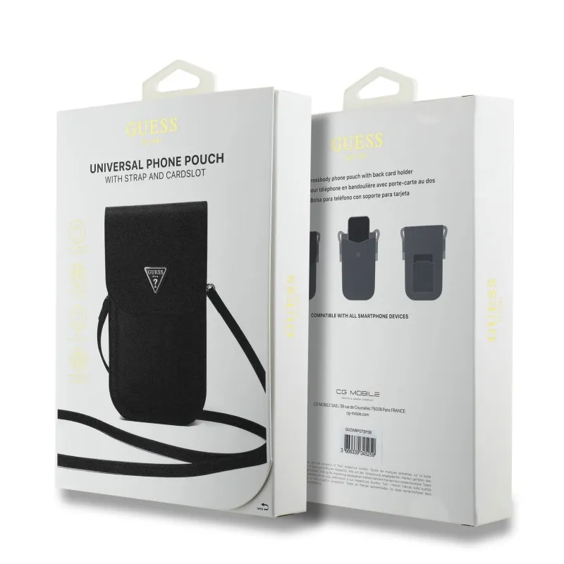 Guess PU szemcsés háromszög logós telefon táska fekete