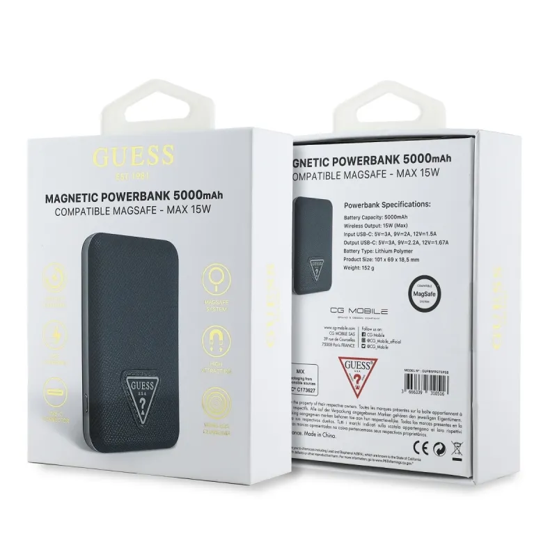 Guess PU szemcsés háromszög logóval MagSafe Powerbank 5000mAh kék