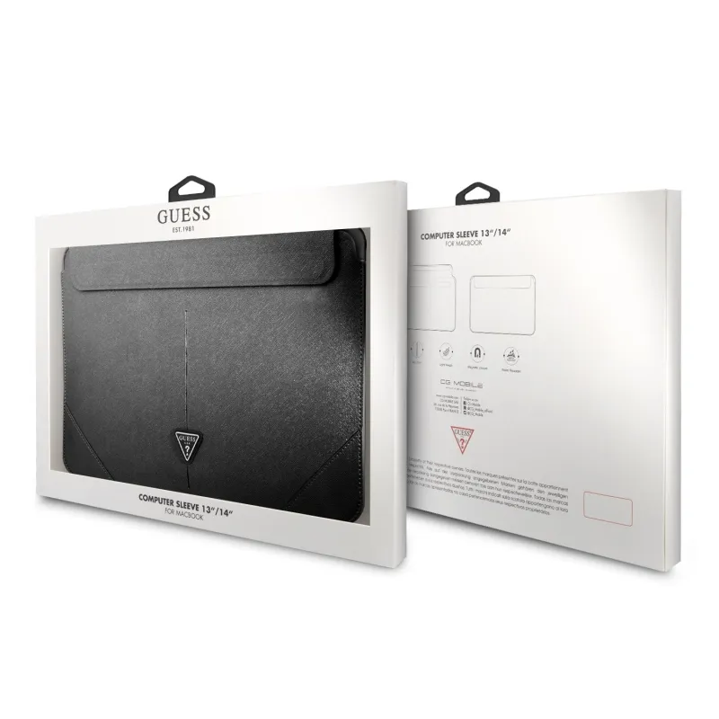 Guess Saffiano háromszög fém logós számítógépes tok 13/14" fekete