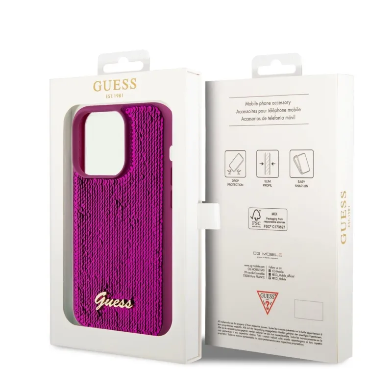 Guess Sequin Script Logo hátlap iPhone 14 Pro Max Magenta színű borító iPhone 14 Pro Max készülékhez