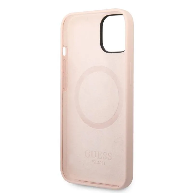 Guess szilikon tok MagSafe támogatással iPhone 14 Plus készülékhez - rózsaszín
