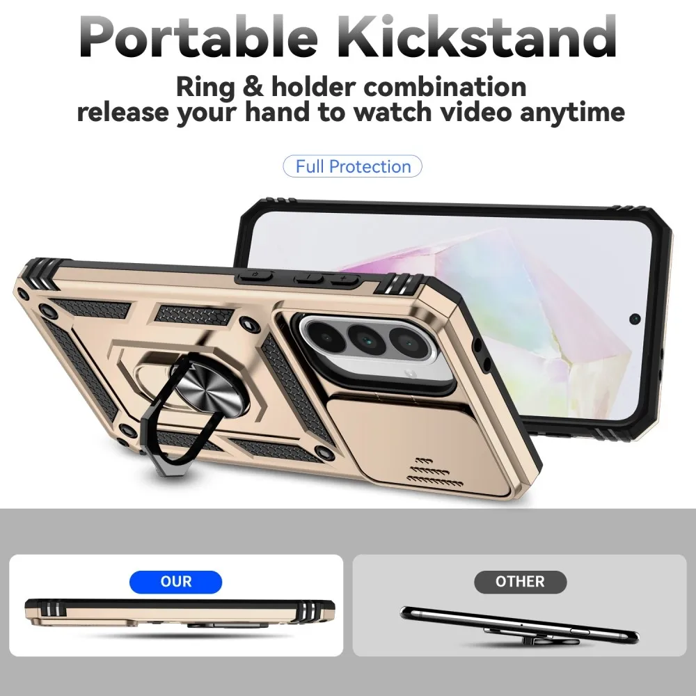 A Ring tartós hibrid tok biztonságot nyújt a telefonodnak minden oldalról és hátulról is, a mozgatható lencsevédő és az enyhén megemelt szélek pedig tökéletes védelmet nyújtanak az érzékeny részeknek. A fém rész lehetővé teszi a mágneses autós tartók használatát.