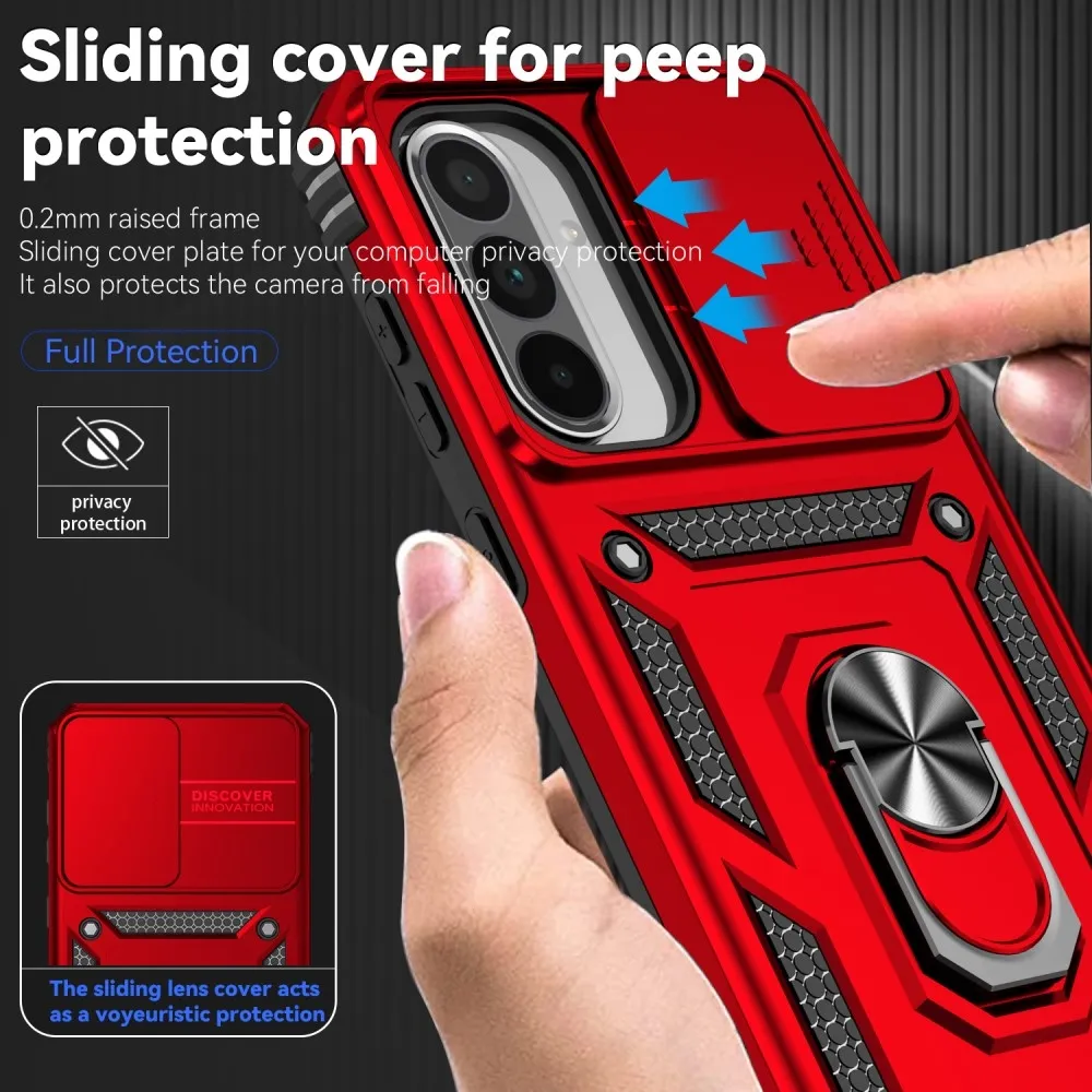 A Ring tartós hibrid tok biztonságot nyújt a telefonodnak minden oldalról és hátulról is, a mozgatható lencsevédő és az enyhén megemelt szélek pedig tökéletes védelmet nyújtanak az érzékeny részeknek. A fém rész lehetővé teszi a mágneses autós tartók használatát.