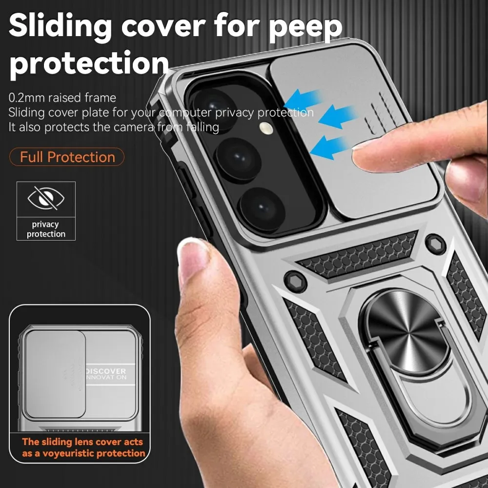 A Ring tartós hibrid tok biztonságot nyújt a telefonodnak minden oldalról és hátulról is, a mozgatható lencsevédő és az enyhén megemelt szélek pedig tökéletes védelmet nyújtanak az érzékeny részeknek. A fém rész lehetővé teszi a mágneses autós tartók használatát.