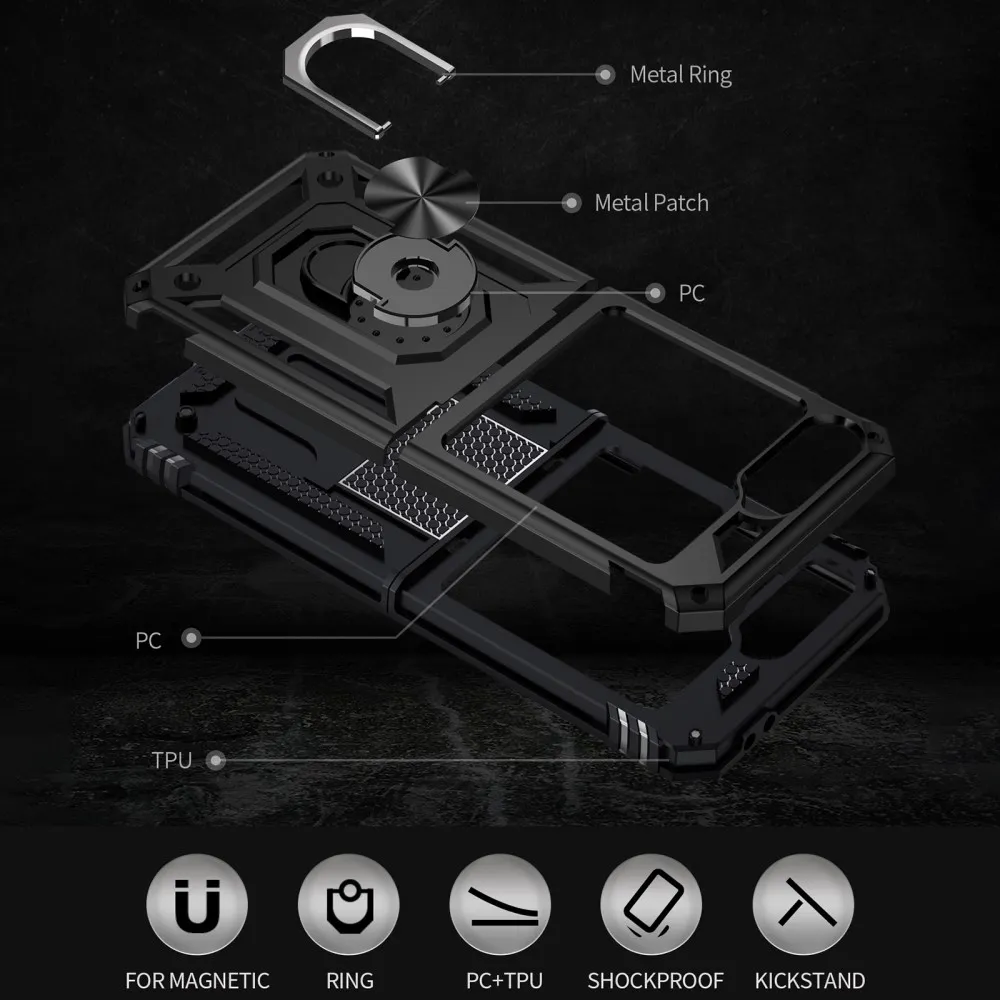 A Ring tartós hibrid tok biztonságot nyújt a telefonodnak minden oldalról és hátulról is, a mozgatható lencsevédő és az enyhén megemelt szélek pedig tökéletes védelmet nyújtanak az érzékeny részeknek. A fém rész lehetővé teszi a mágneses autós tartók használatát.